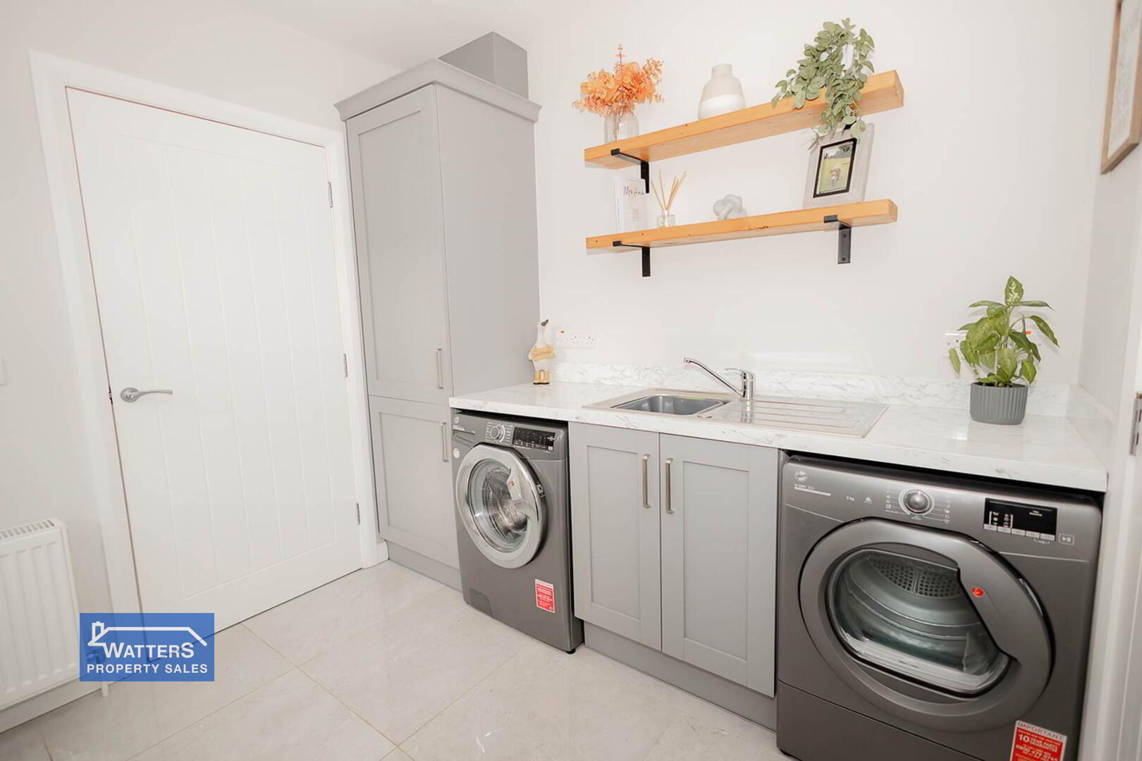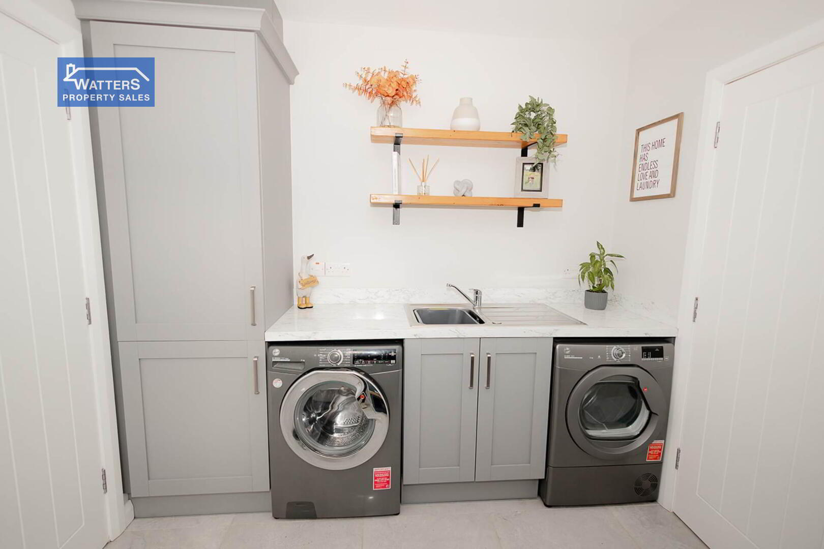 Additional ground floor accommodation includes a fully fitted utility room with washer, dryer, sink and cloak area, a downstairs WC and a separate storage under the stairs which could be used as a walk-in larder.