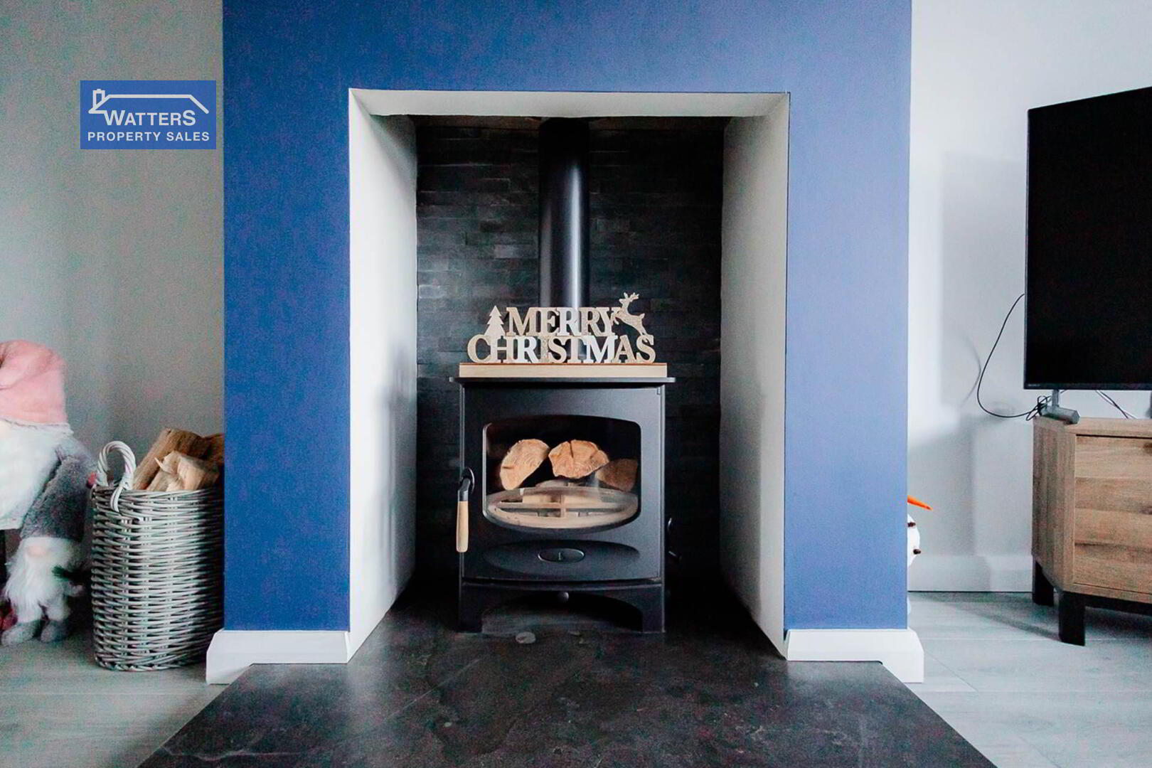 Living room 12` 3` x 18` 6` bay window Wood burning stove