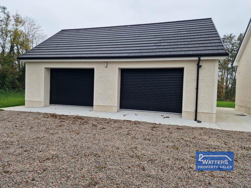 A detached 600 sq. ft. double garage provides ample storage benefiting from insulated electric roller doors and a WC. The expansive rear space offers abundant room for outdoor gatherings and activities, all while enjoying panoramic views of the Lough.