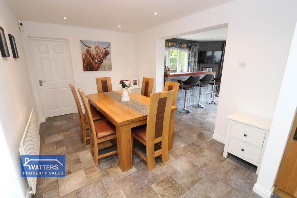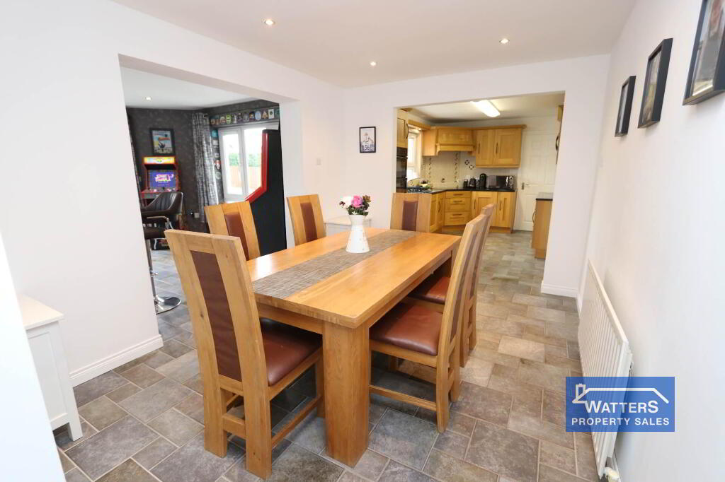 Prominently positioned within this development, this meticulously kept and immaculate home has everything to offer the modern family. Spacious living accommodation is across two floors, with the entrance hall leading to a bright and comfortable living room with open fire. The property was modified in 2005, with the addition of a second reception room which is currently used as a games room but could also serve well as a second reception room, study or fifth bedroom. The extension has also created an open-plan space which has been turned into a bar, blending together the kitchen, dining room and family sunroom, perfect for family entertainment.