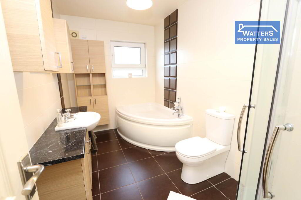 The Oak stairwell leads to first floor accommodation comprising of four good sized bedrooms, one with en-suite, a fully tiled modern family bathroom and a generously sized hot press. Note one of the bedrooms is currently being used as an office.